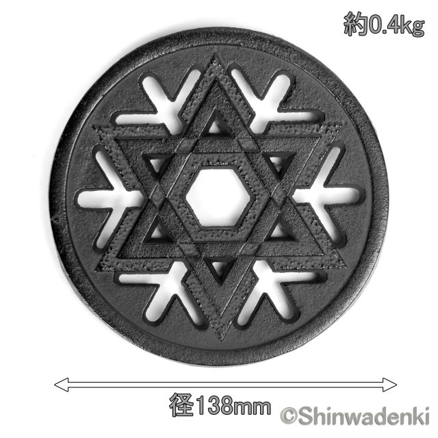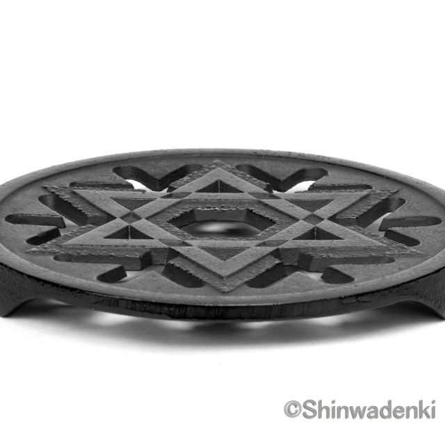 ●職人の技が光る複雑な造形美 冬の静けさの中にきらめく雪の結晶をモチーフにした南部鉄器の敷物です。